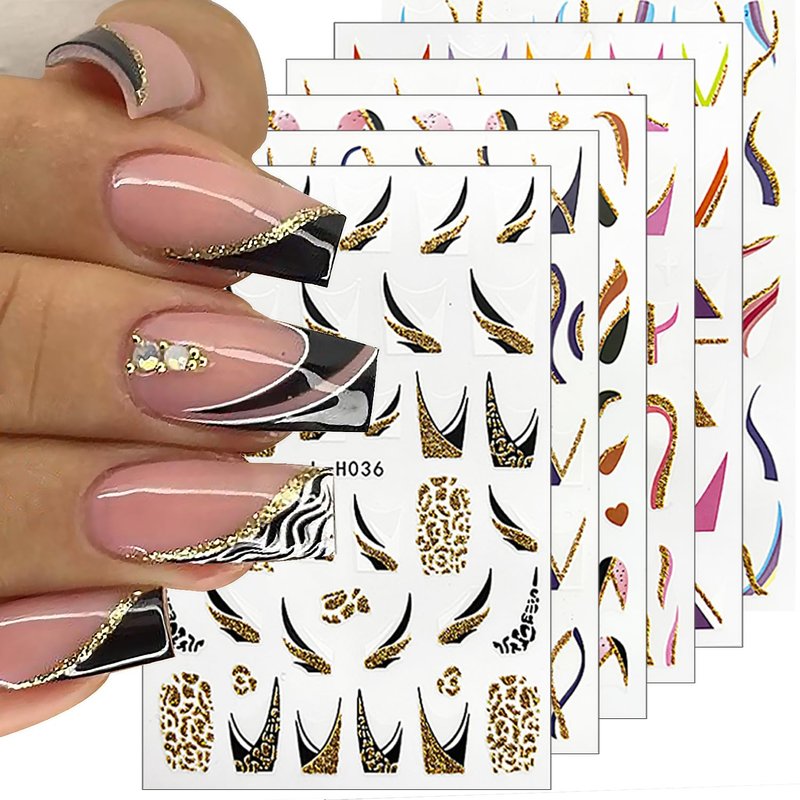 - 【Package Included】You will get 6 Sheets gold french nail stickers, unique three-dimensional effect, will not fade, more realistic than ordinary stickers, you can well create a different 3D nail effect.