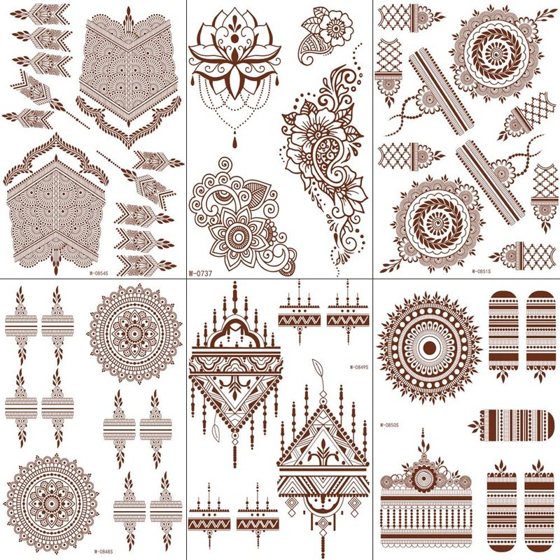 6 Sheets Henna Temporary Tattoo Stickers, Waterproof Lace Pattern Tattoos Mystery Flower Body Art Henna Sticker for Women Girls DIY Body Face Arms Legs (#3-6pcs)