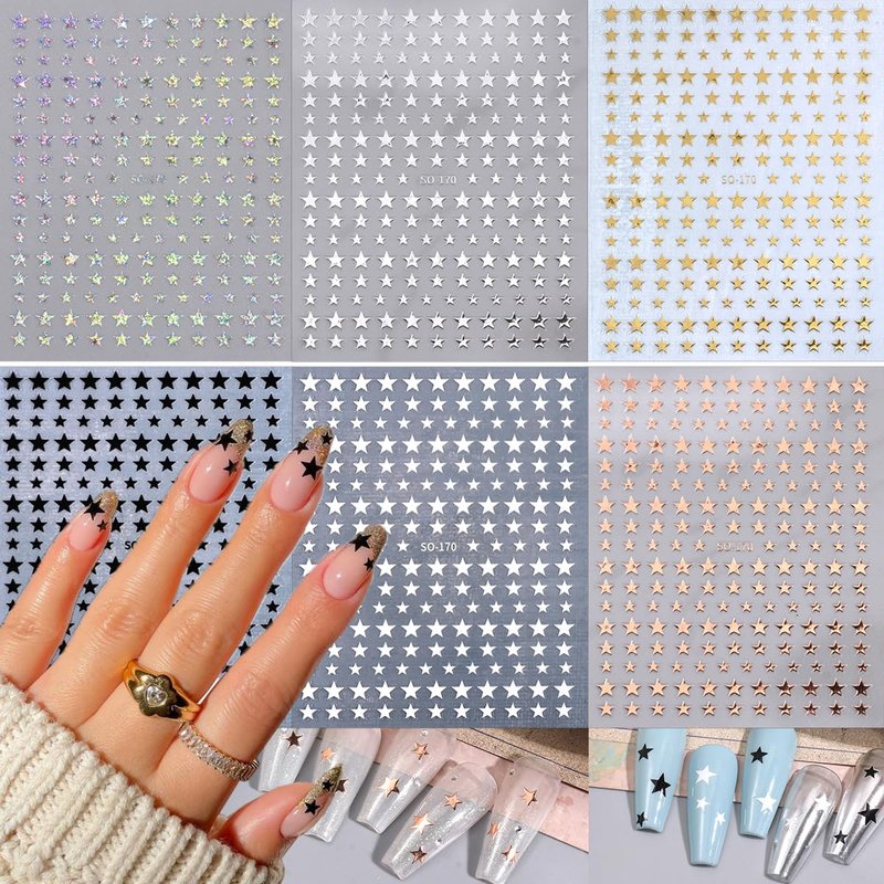 - Package: You will get 6 sheets star nail stickers in 6 different colors, including gold, silver and rose gold, black, white colors for you to match/choose at will, bringing you more inspiration for nail DIY design creation.