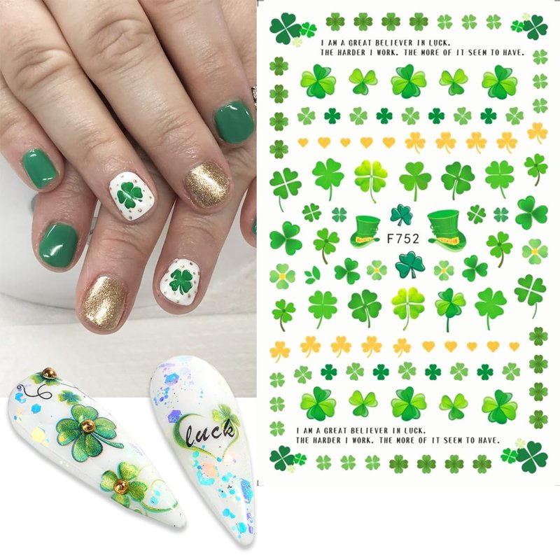 - St. Patrick's Day Design: You will get 6 sheets 3d self-adhesive St. Patrick's Day nail stickers, Green Shamrocks Nail Decals, bring you more DIY holiday manicure decorations choices.