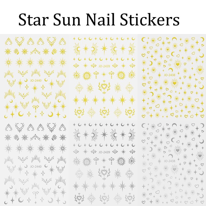 Star Nail Art Stickers Moon Nail Stickers 3D Self-Adhesive Sun Nail Decals