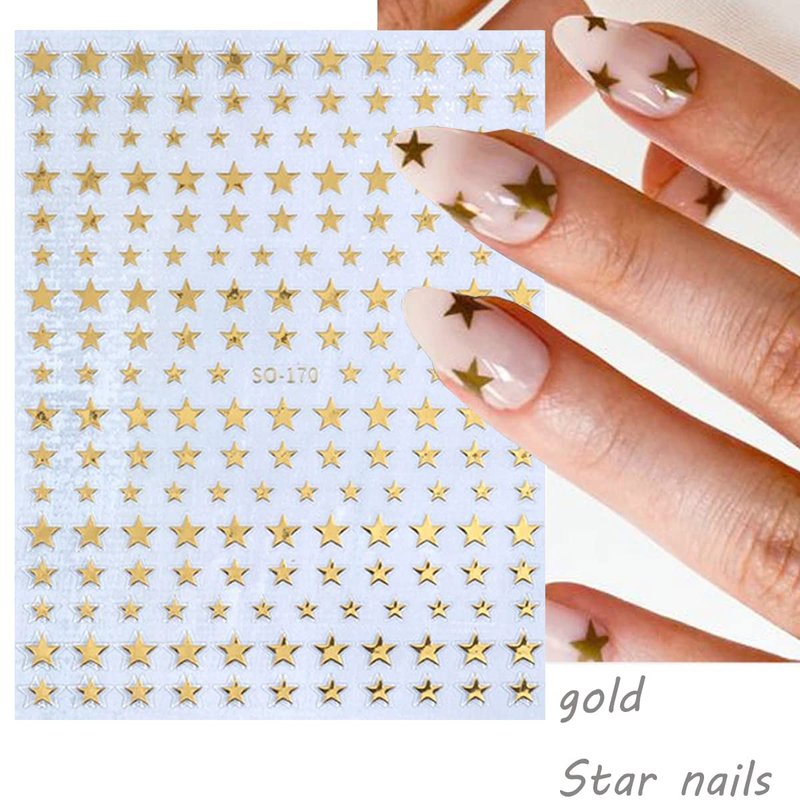 - Package : 6 sheets star gold nail art stickers 3D stickers for nails. Exquisite Gold nail design decoration can provide you with a variety of choices, allowing you to easily DIY your designer nail decoration at home.