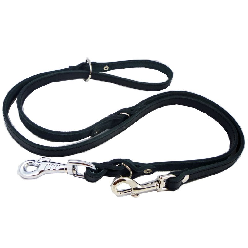 Six way European leashes have been popular with dog obedience trainers, professional handlers, police K9 trainers around the world for years. This Classic Adjustable Leather Dog Leash is designed to make walking your dog easy! Perfect for walking with any dog, you can easily adjust the length of this leash to make sure you and your pet are always comfortable. Six Functions in One Versatile Leash! 3/4" wide this size is most suitable for large breeds.