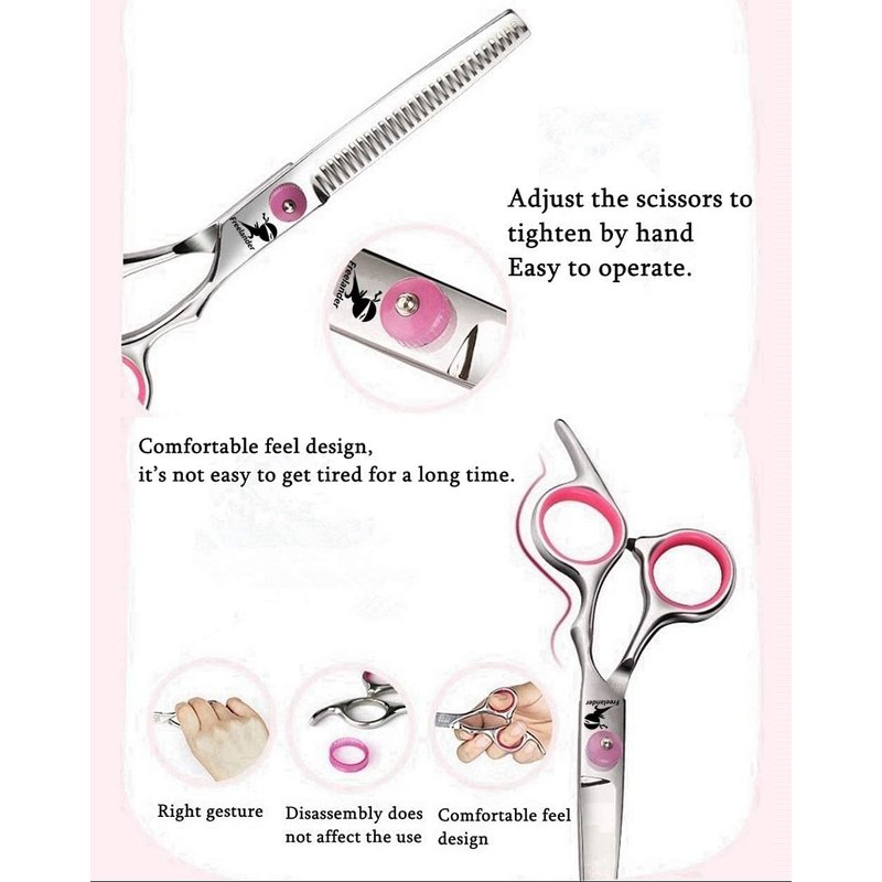 - Package: 1 regular hair scissors, 1 thinning scissors, 1 leather bag, 4 hairpin, 1 bang clip, 2 comb, 1 tonsure comb, haircut salon cape, 1 cleaning cloth, Accessories color: I will send randomly(may not as pictures).