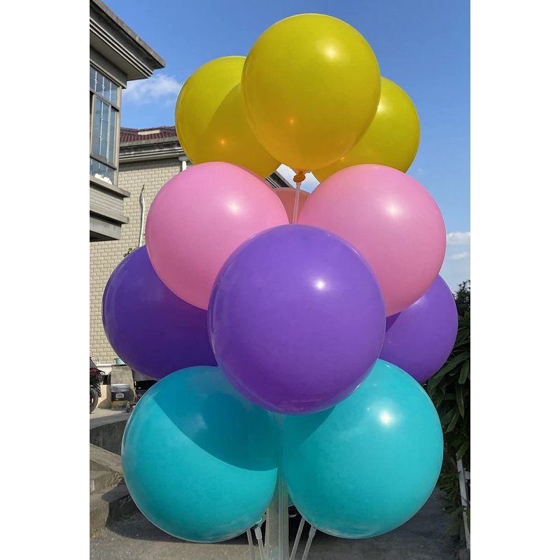 60 pcs 12 Inch Purple Teal Pink Yellow Latex Balloons Decorations, Birthday Wedding Baby Shower Party Balloons Decorations (Purple Cyan Pink Yellow)