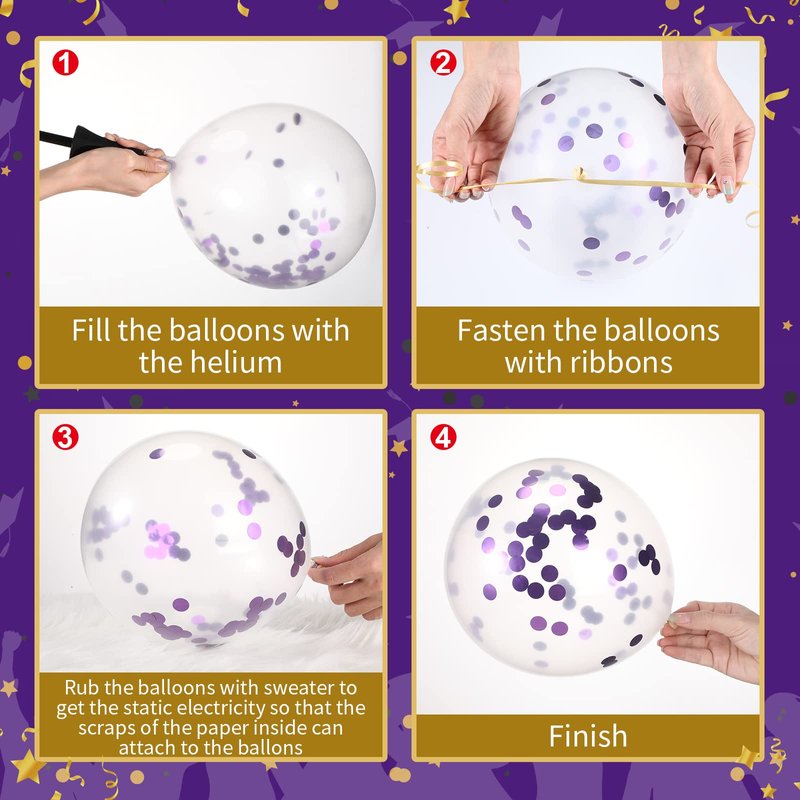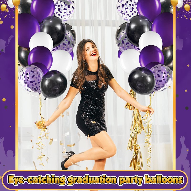 - Widely Applied: black and purple confetti balloons can be applied on engagements party, birthday, wedding, baby showers, celebrations, college, high school graduation party, make beautiful and elegant party decorations