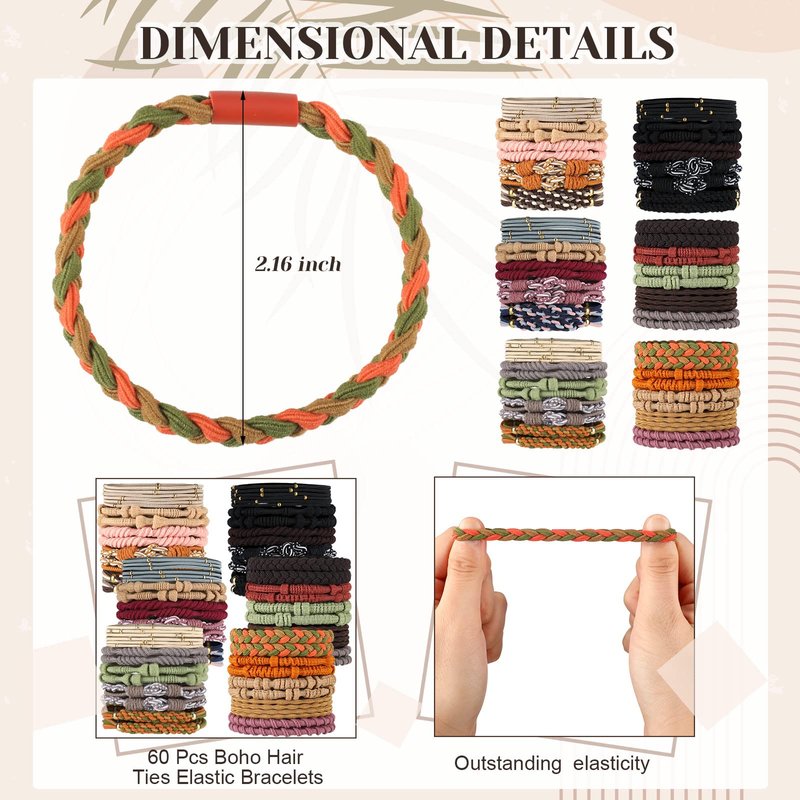 60 Pcs Boho Hair Ties for Women Cute Hair Tie Bracelets Elastic Bracelet Hair Ties Stylish Hair Elastics Soft Dual Use Bracelet 10 Styles Hair Band for Girls Thick Braids Ponytails