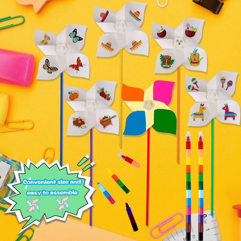 - 【Size Details】: the size of DIY paper pinwheels for kids is about 21 x 28 cm/ 8.27 x 11.02 inch, which is a good size and suitable for boys and girls to play, and the pole has 6 different colors, you can freely combine it with the pinwheels
