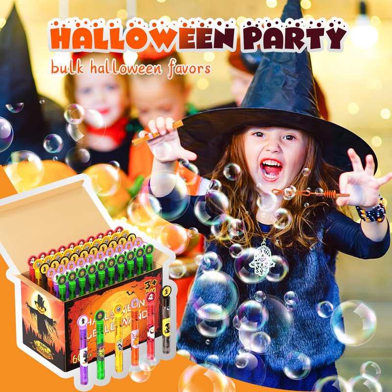 60 Pcs Halloween Bubble Wand, Halloween Party Favors for Kids, Party Supplies Mini Bubbles Bulk Halloween Toys Gifts Classroom Prizes for Toddlers Boys Girls Party, Easter Basket Stuffers Goodie Bag