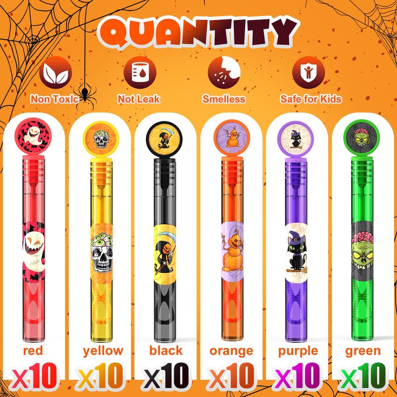 - Great Value Halloween Mini Bubble Wands Set: A set of 60 pec 6 colors (red, yellow, black, orange, purple, green), a large number of colorful bubbles to increase the festive atmosphere