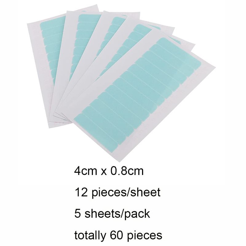 - 5 sheets and 12 pieces for each sheet, totally 60 pieces of the double sided hair extension tape replacement in the package.