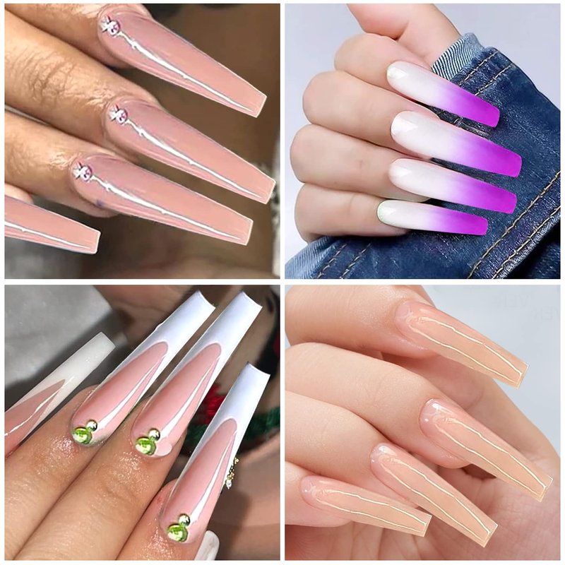 - 【Easy to Use】: Clear fake nail tips with half coverage coffin design, matching a appropriate xxl nail tips firstly and apply a glue on your nail bed and long coffin tips, then gently press and hold for 10 seconds. No matter your are professional nail artist or nail art starter, you can create a many different types of false nails by trimming and polishing.