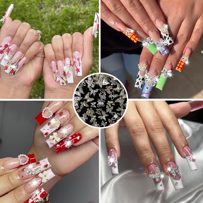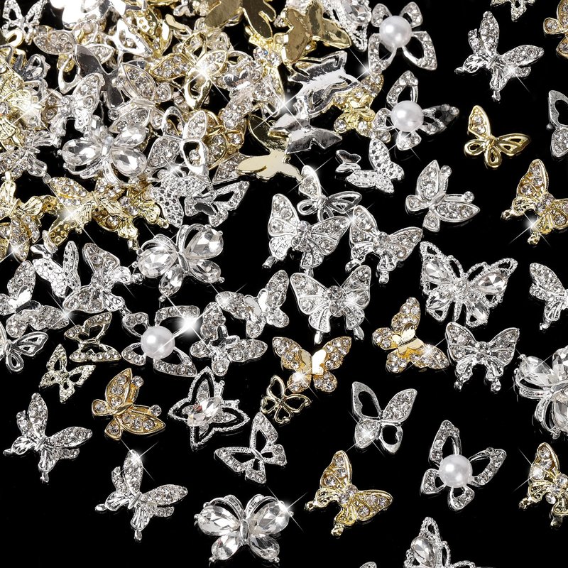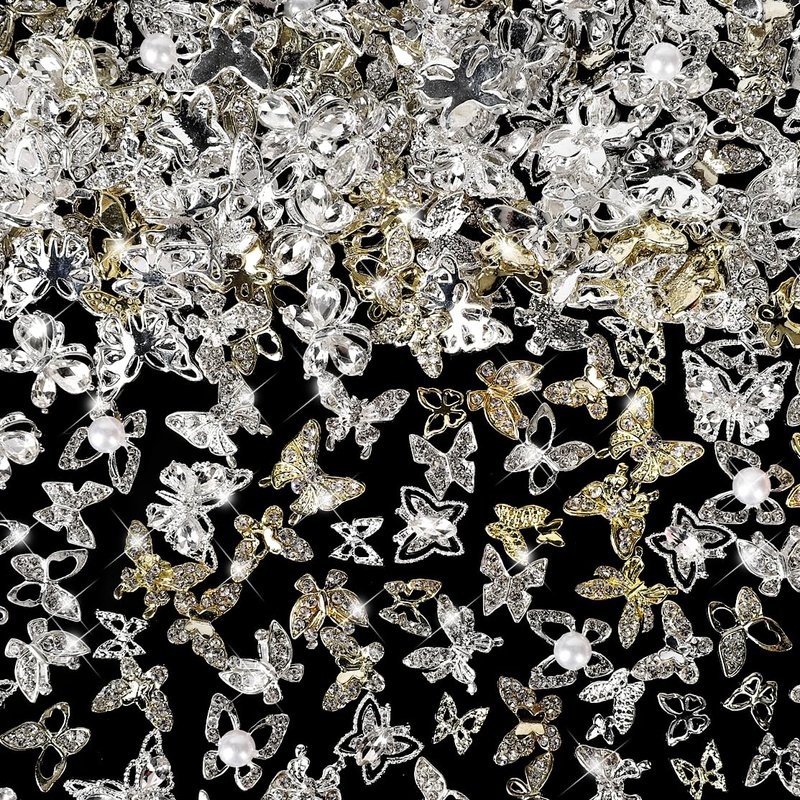 - Premium Quality: Made from high-quality stainless alloy, our butterfly nail charms are durable and long-lasting. The gold and silver metal base is inlaid with sparkling crystal diamond rhinestones, adding a touch of glamour to your nail art.
