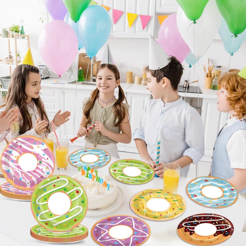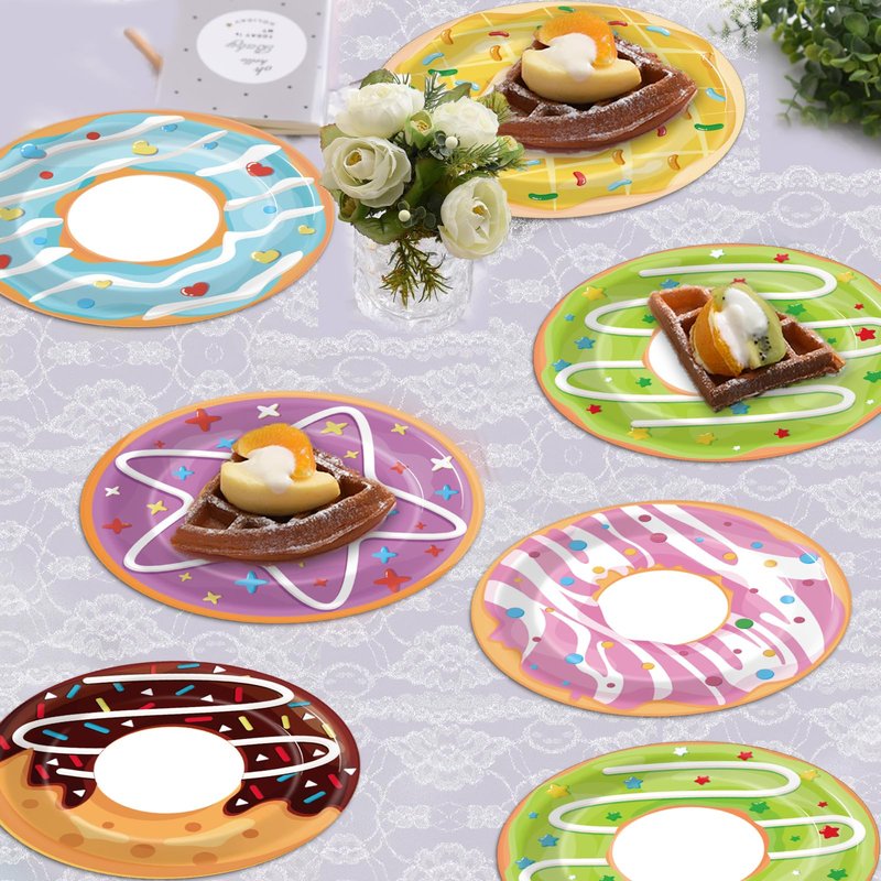 - 4.Quick and Easy Clean-Up: Our donut themed birthday paper plates are disposable, saving you time cleaning up after your party. There's no need to worry about spending a lot of effort cleaning up after a party.