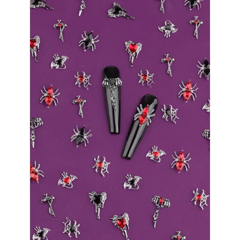 - There are 12 different colors and styles of spider bat nail rhinestone accessories to choose from, each style has 5 pieces.