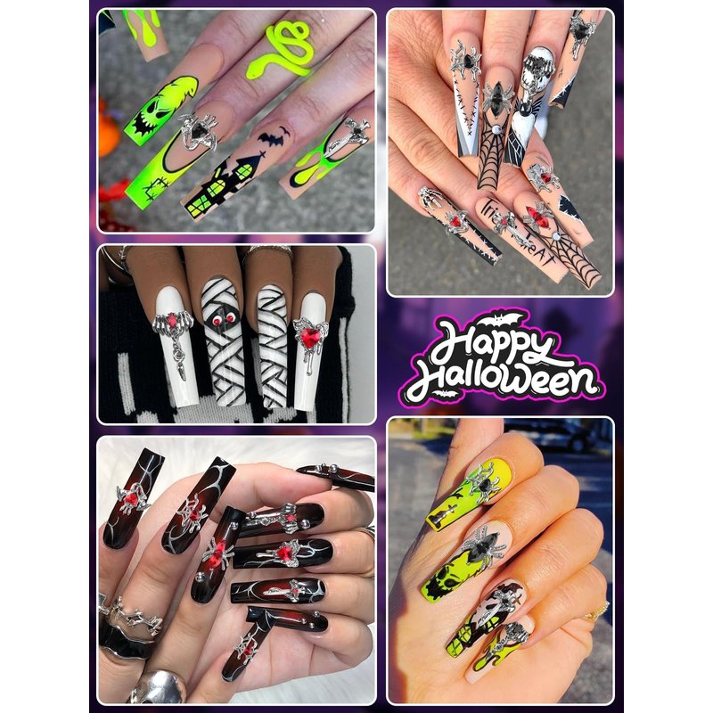 - 🦇 3D Diamond Design: These metal Halloween DIY nail gems adopt three-dimensional design, with combined with diamond and metal, make the Halloween element pattern more realistic. Show off your manicure at the Halloween party to get everyone's attention.