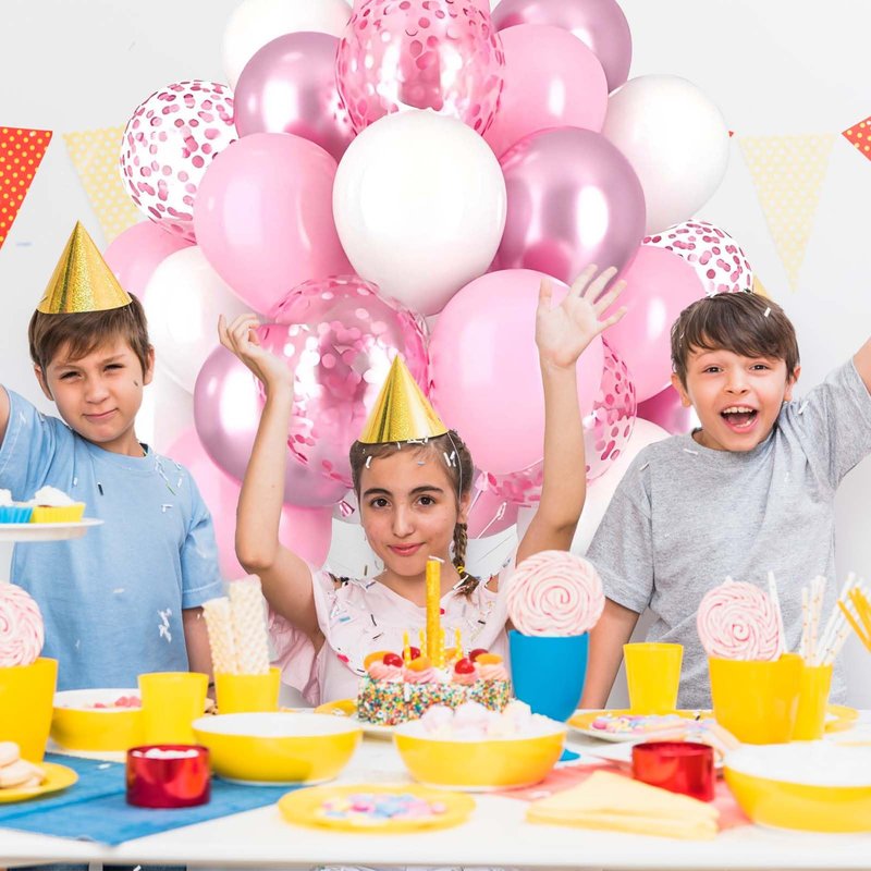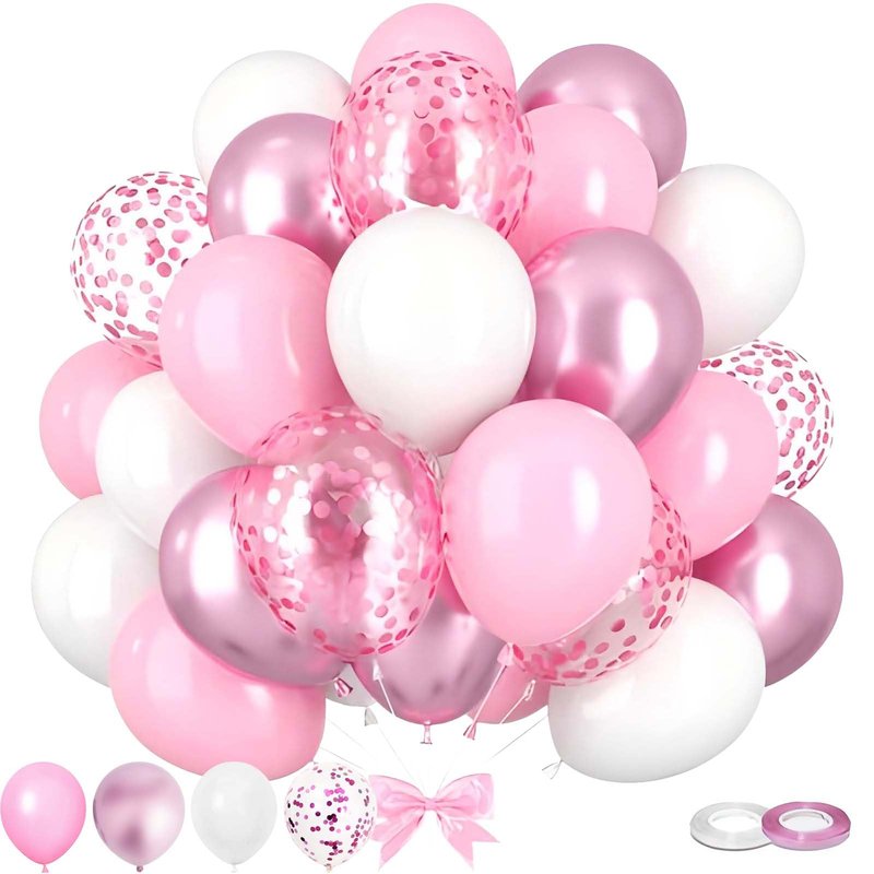 - 【Party Balloons Decorations Set】Our balloon decorations set includes 30PCS 12IN Pink Balloons,20PCS 12IN White Balloons,10PCS 12IN Pink Confetti Balloons,2 rolls of ribbon. The sufficient number of baloon is enough for you to decorate a unique party and make any dull space full of vitality and joy