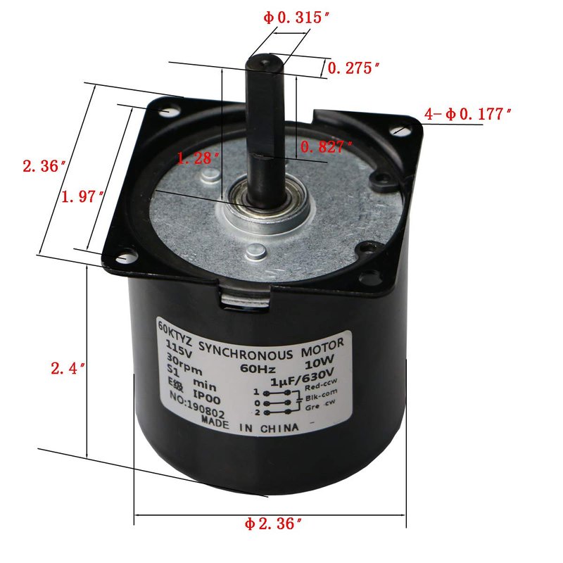 - 115V/60Hz 60rpm/min low speed AC Synchronous Motor,CW/CCW Control, which can be rotated counterclockwise or clockwise by adjusting the wiring method.the motor lead wire is waterproofed at the outlet of the outer casing