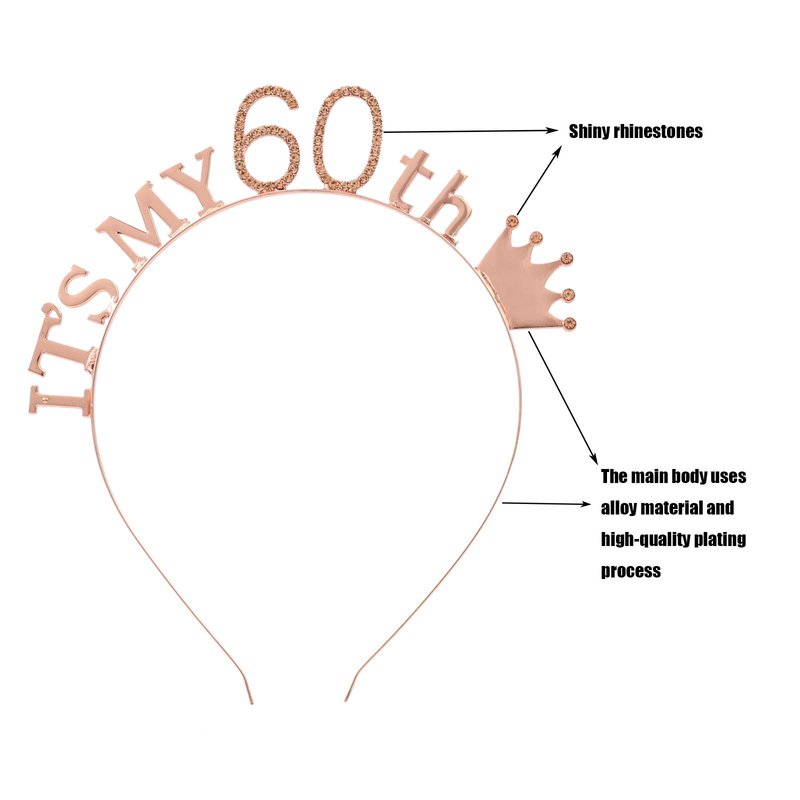 60th Birthday Headband and Sash,It's My Birthday Crystal Crown and Satin Sash for Women Birthday Party Supplies Decoration Rhinestone Birthday Crown and Glitter Sash (Rose Gold)