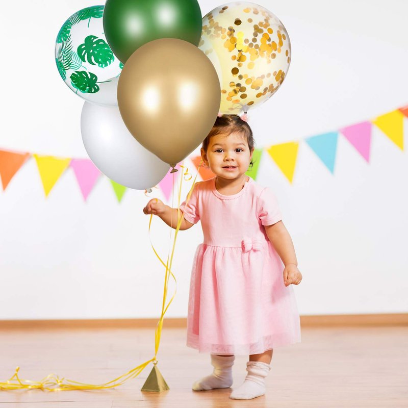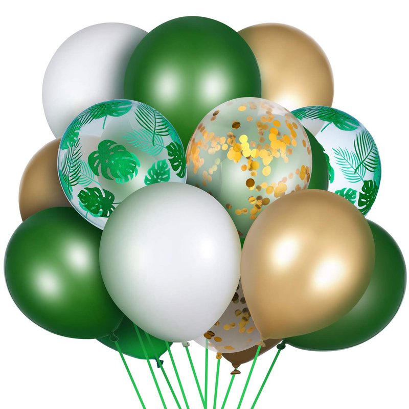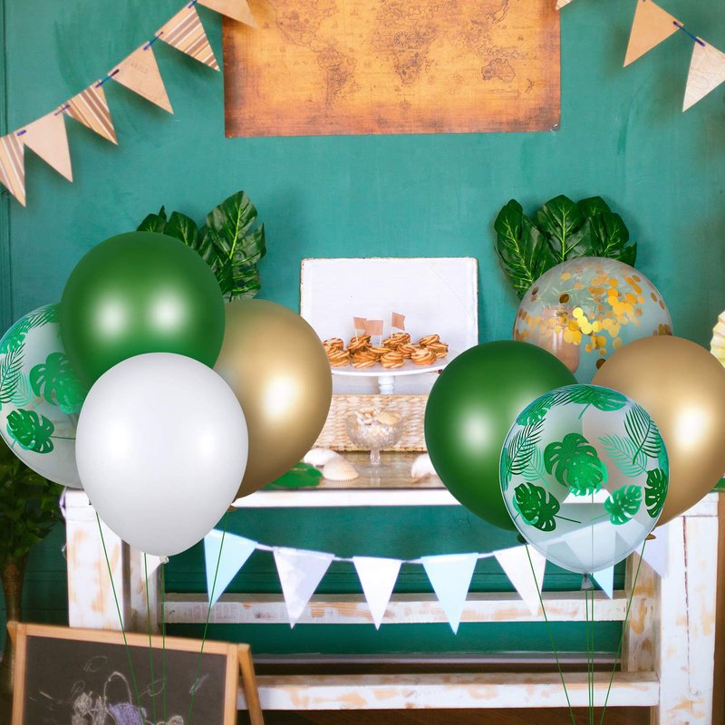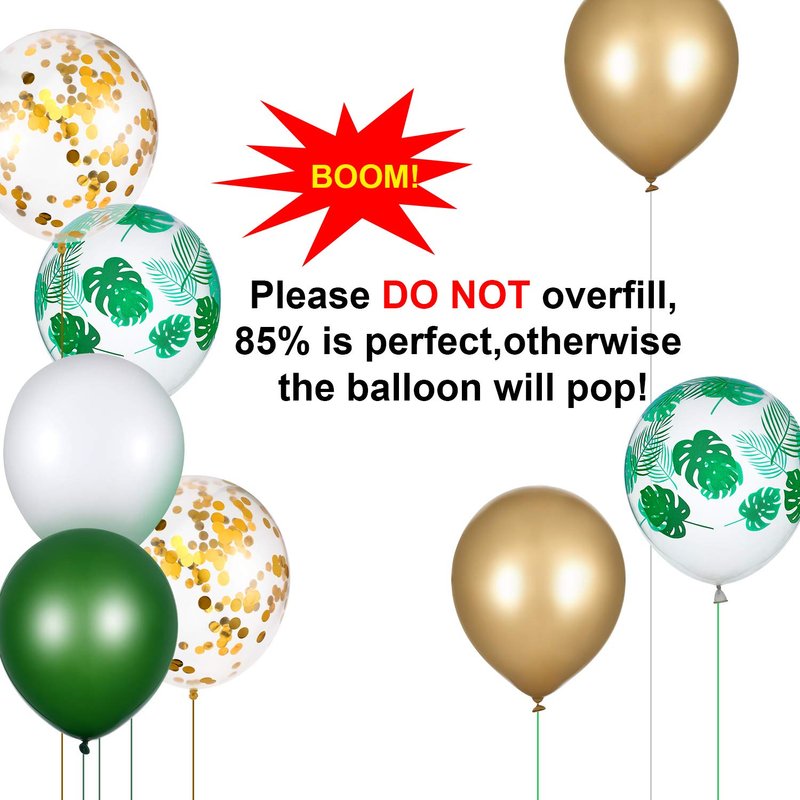 • What you receive: come with 65 pieces jungle safari theme balloons in total, including 10 pieces palm leaves balloons, 30 pieces deep green balloons, 5 pieces gold metallic balloons, 5 pieces gold confetti balloons, 15 pieces white balloons with 1 piece balloon chain, good combination can meet your daily life or party decoration needs