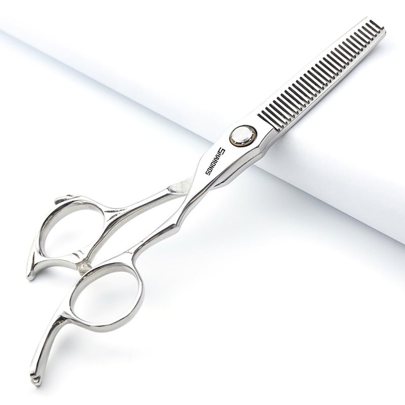 - Material: The shock absorber at the end of the handle can effectively reduce wear and noise, and the smooth stainless steel texture can reduce messy hair. It has the characteristics of heat resistance, corrosion resistance, rust prevention, and non fading. The blade is very sharp and can cut and thin smoothly and cleanly without damaging or tearing your hair