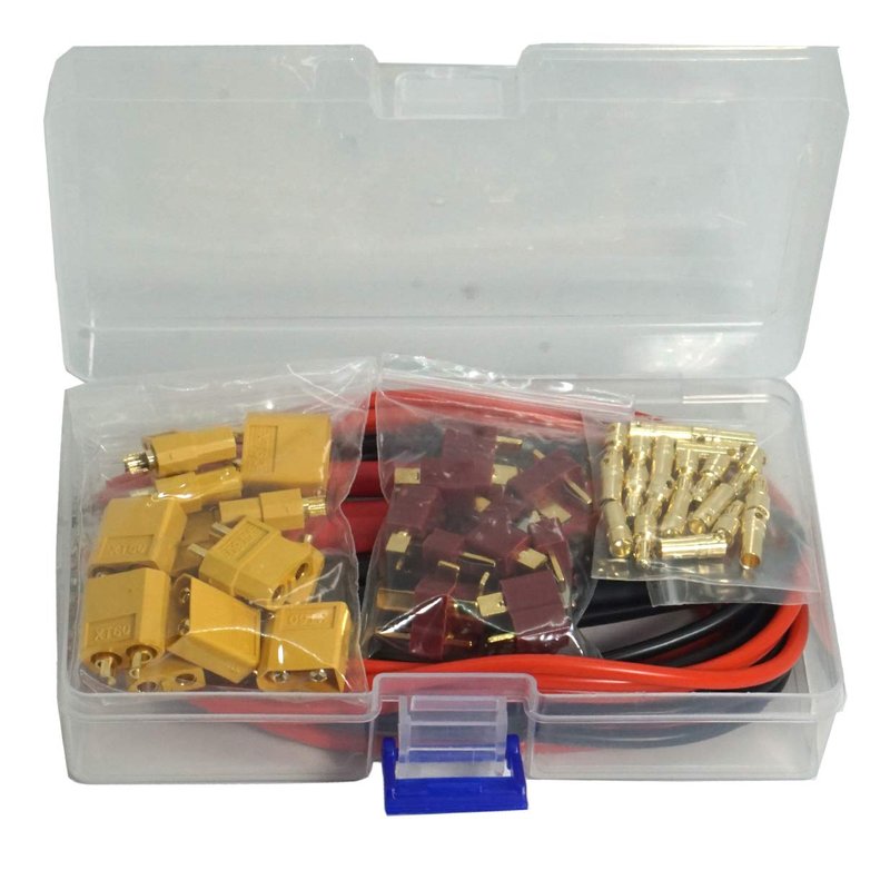 - 6Pairs T-plug,6Pairs XT60 and 10Pairs 3.5mm Gold Banana Plug are combined with male and female adapter connector, providing a secured connection for your batteries and esc.
