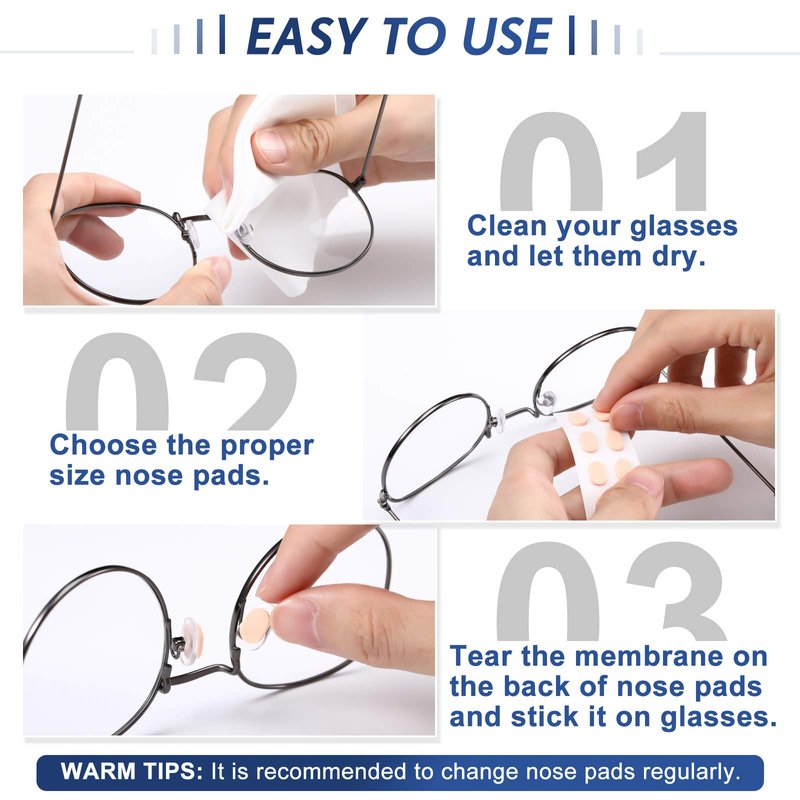 - Easy to use: these foam nose pads are easy to use, you just need to rub application area with alcohol and let it dry, then tear off the glue on the back of the nose pad and paste on, which provides an easy and effective way to keep glasses well in place and make it more comfortable for wearing