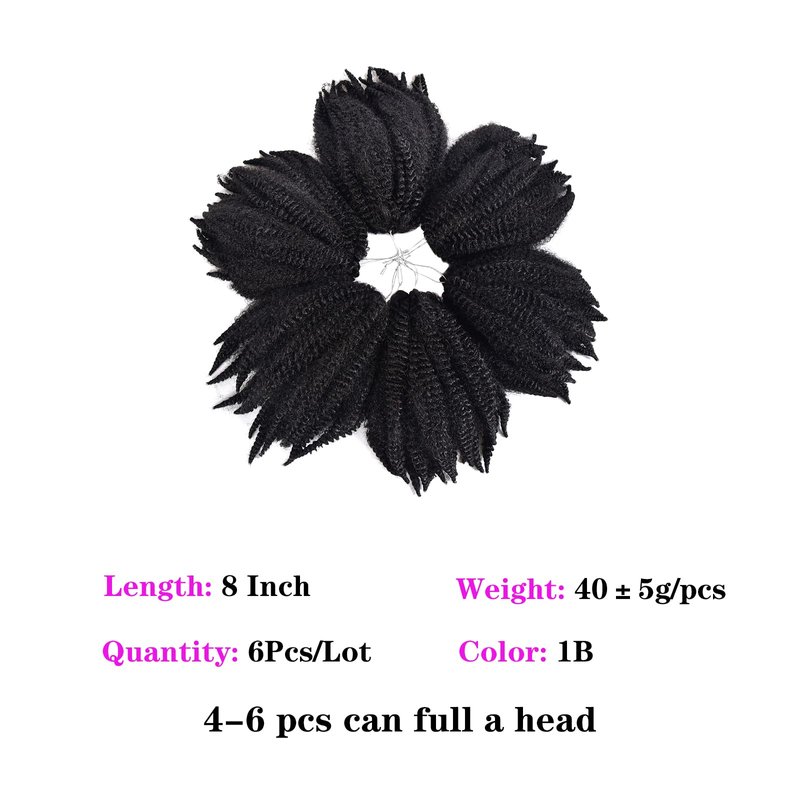 6Packs Marley Hair for Twists 8Inch Short Braiding Hair Afro Kinky Twist Crochet Braids Synthetic Fiber Hair Extensions for Women(1B#)