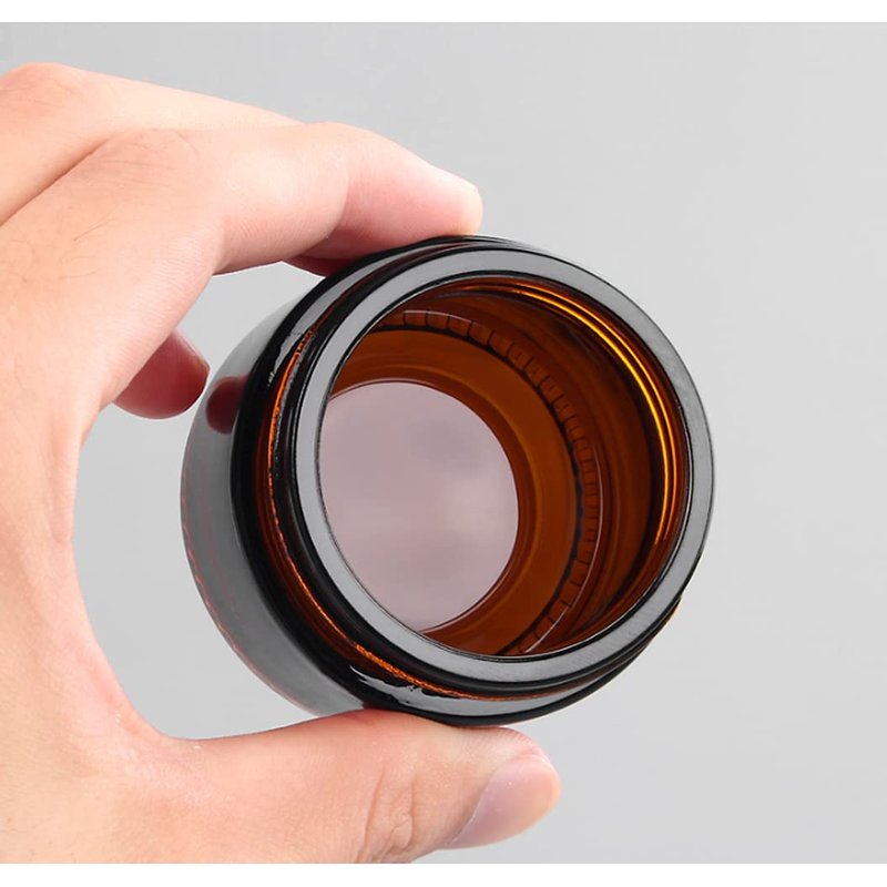 6PCS 10ml Amber Glass Jar Empty Refillable Cosmetic Face Cream Lip Balm Storage Jars Bottle Container Pot with Liners and Screw Black Lid for Make up Essential Oils Lotion