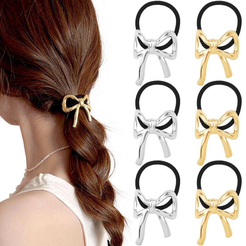 - 【Package Include】6pcs bow hair ties (gold+silver), which will feel good on your wrist, suitable for a messy bun at brunch or lounging around, sports, hanging out, and quickly designing a hairstyle.