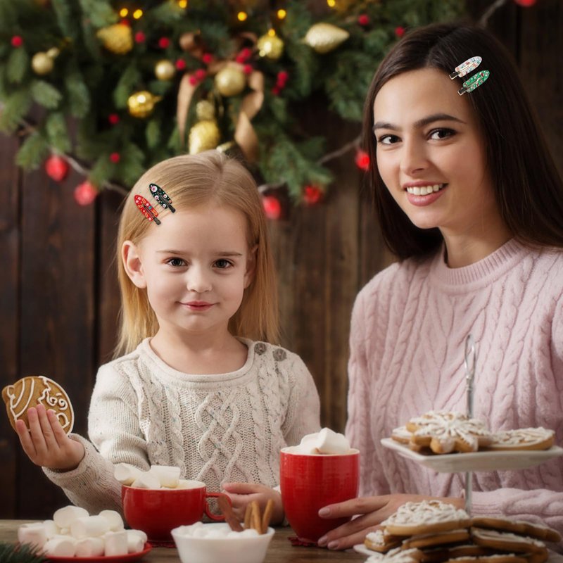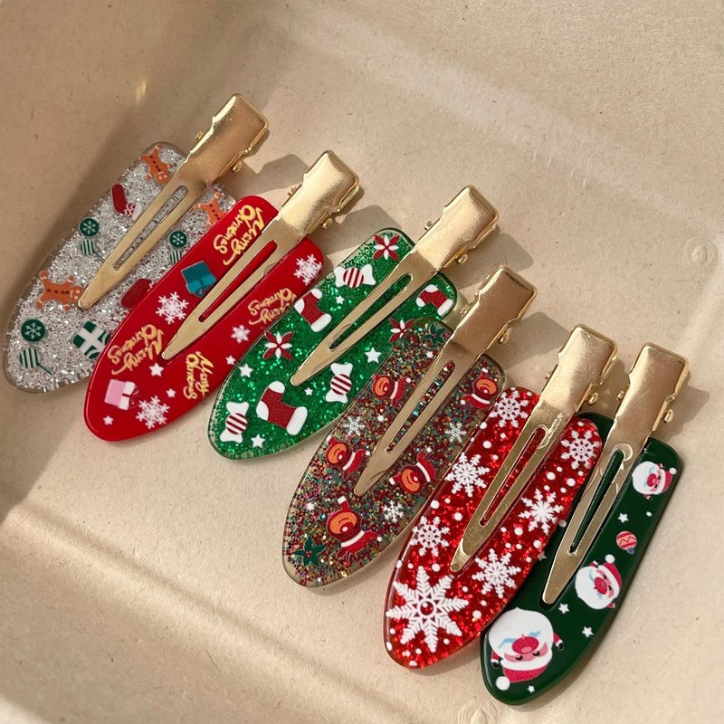 - Christmas Design: These hair clips are designed with Christmas elements, featuring patterns such as snowflakes, Christmas deer, Santa Claus, Christmas socks, etc. The colors are also very festive and will make you sweeter and cuter