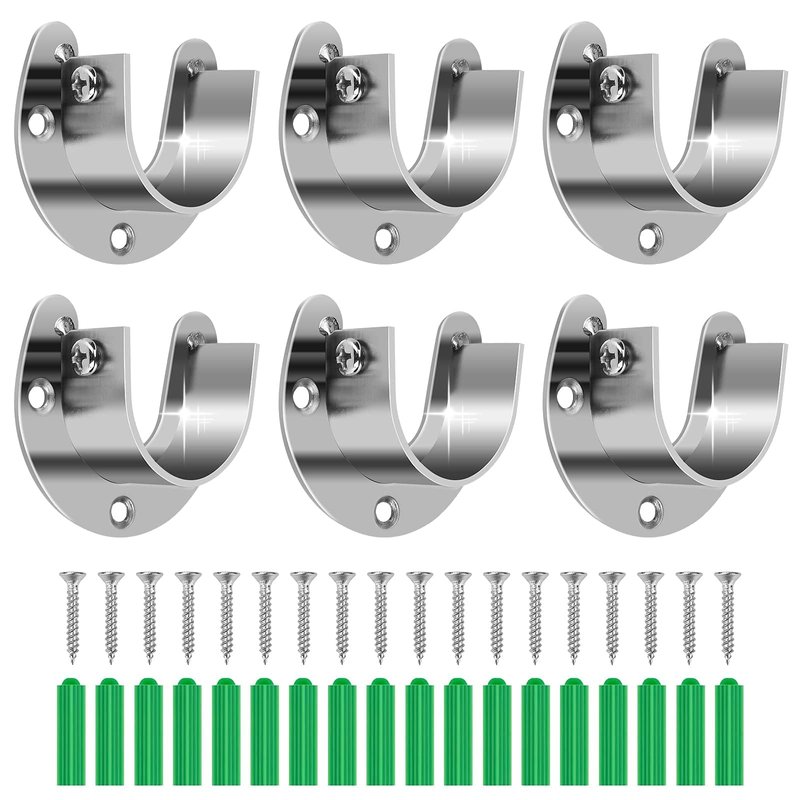 Product Specifications: Color: Silver Total Weight: 0.71 LB Material: SUS 304 Stainless Steel Opening Diameter: 32mm / 1.25Inch Compatibility: Applicable closet rod size up to 32mm (1-1/4") in diameter How to use: Just drill guide holes, put in the dry wall anchors, and then screw the mounts into the anchors; The mount has a screw on the side to tighten against the rod so that the rod doesn't slide around. The Siziviki Closet Pole Socket Features: 1. Made of high quality stainless steel, thick and rust resistant, these flanges to bring you with convenience, efficiency and satisfaction. 2. Available for: matches with clothes hanging tube up to 32mm (1-1/4 inch) in diameter. 3. Can be applied in a bathroom, wardrobe, balcony and a clothes shop to store or display clothes. 4. Characteristic: practical design and ease of installation; firm and durable. 5. Designed with an adjustable screw on each open socket, you will be able to fix the rod properly to avoid falling down. 6. There are 3 holes fixed on closet pole brackets, which will make the rods more stable and solid while using them. Package Included: 6 Open-lip Closet Pole Socket 18 Mounting screws 18 Hollow wall anchors