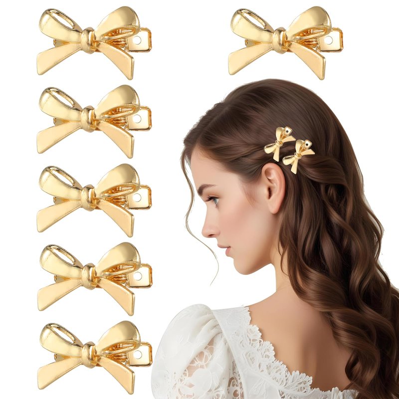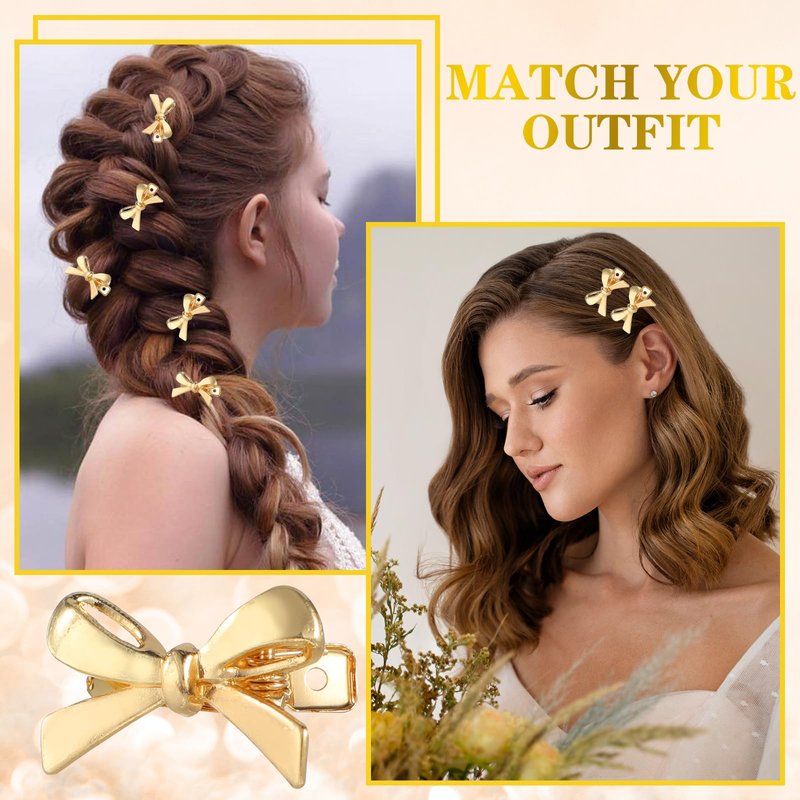 - 【Mini Hair Bow Clips】: These mini hair bow clips are not only functional but also fashionable. The gold hair bow design adds a touch of sophistication to any outfit. Whether you're attending a party, wedding, or simply going about your daily routine, these mini bow hair clips will keep your hair neat and stylish.