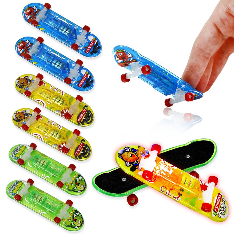 6Pcs Light up Finger Toys Professional Finger Skateboard, Mini Skateboard Fingerboards for Creative Fingertips Movement, Novelty Toys for Adults and Kids Boys Girls Gifts