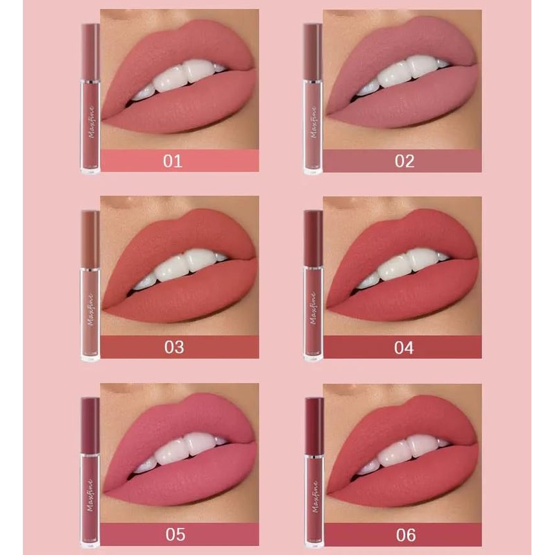 6Pcs Matte Liquid Stick Sets, Natural, Moisturizing, Plump Lip Gloss Set, Red Lip Gloss Women Long Lasting Waterproof Beauty Finishing(Set B)