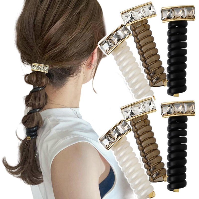 - You will get 6pcs rhinestone Telephone Wire Scrunchies Spiral Hair Ties which fit most hair colors.