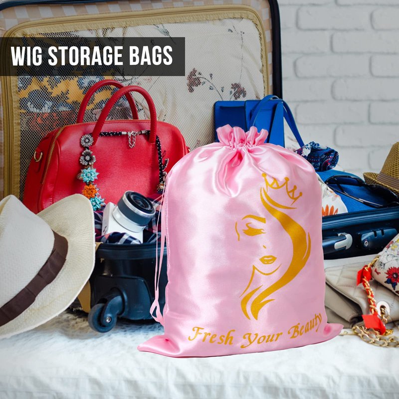 6PCS Satin Wig Bags wig Storage for Multiple Wigs Bags Storage Satin Bags for Wigs Silk Bags with Drawstring Hair Bag Hair Storage Bags for Packaging Wigs, Bundles, Hair Extensions (Pink)
