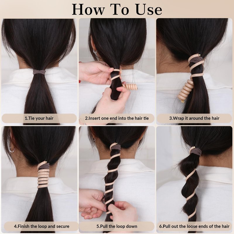 This creative braided hair accessory is very easy to use. First, tie your ponytail with a rubber band, insert the metal clip on one end of the phone cord into the rubber band, then wrap the phone cord hair tie around your ponytail, pull the phone cord downward, and then pull your hair out of the slit of the phone cord to get a very stylish braided hairstyle.