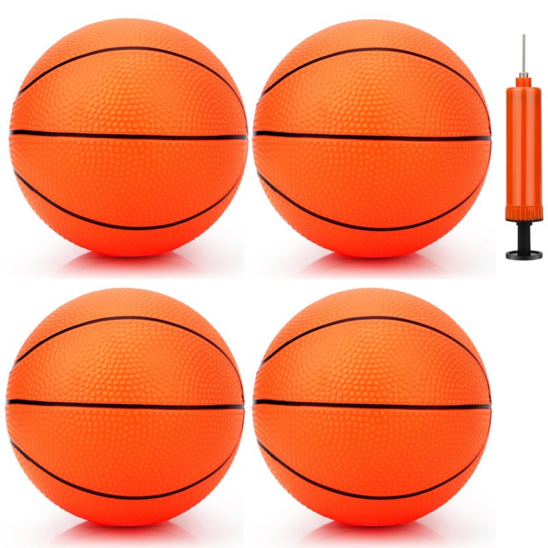 7 Inch PVC Mini Basketball for Indoor Basketball Hoops, Soft 7" Rubber Small Replacement Basketball for Over Door Basketball Hoop Sets, Little Basketballs for Beach Pool Outdoor (4 PCS with Pump)