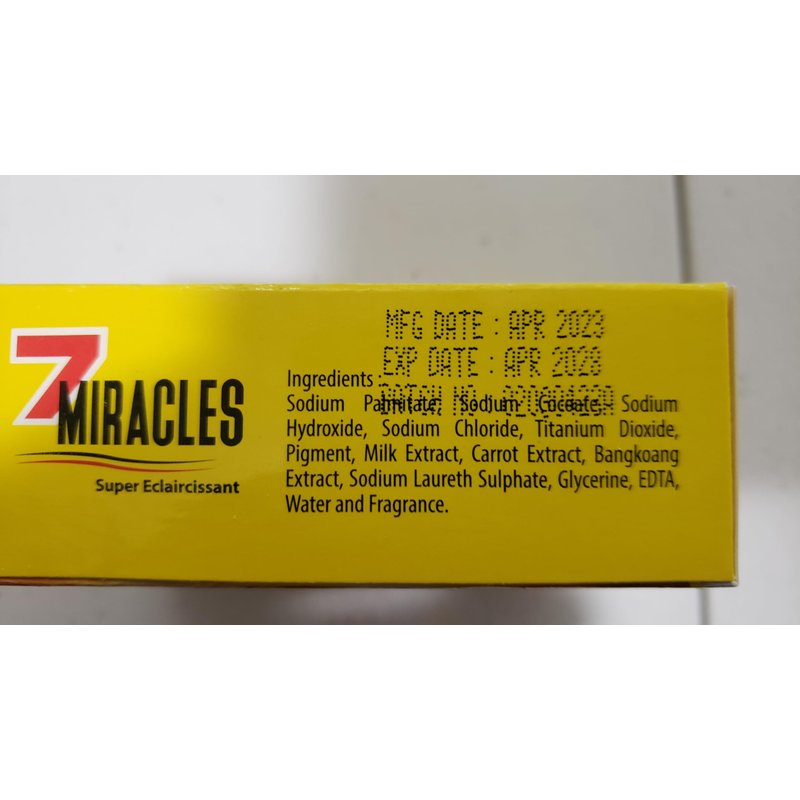 7 Miracles Bar Soap is a luxurious soap crafted to nourish and rejuvenate your skin. Infused with a unique blend of seven miracle ingredients, including Milk Extract, Carrot Extract and Bangkoang Extract, this soap offers a rich, creamy lather that cleanses deeply while moisturizing and soothing the skin. Perfect for all skin types, it helps to balance moisture levels, leaving your skin feeling soft, smooth, and refreshed. The subtle, natural fragrance adds a touch of serenity to your daily routine, making every wash a revitalizing experience. 7 Miracles Bar Soap is a testament to the power of nature in skincare.