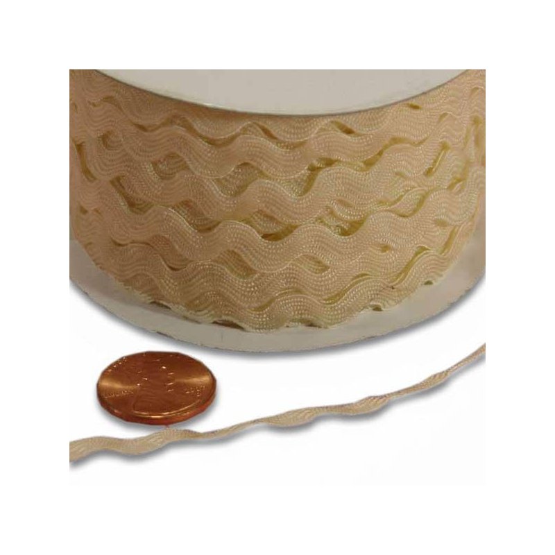 7 mm X 25 Yards Ivory Ric Rac Trim - Ric Rac trim in a selection of colors.For 5mm Ric Rac Trim, width of actual woven material is 0.5cm. Width of total trim from top of wave to bottom of wave is 0.8cm.For 7mm Ric Rac Trim, width of actual woven material is 0.6cm. Width of total trim from top of wave to bottom of wave is 1cm.See our large size Ric Rac trim: Large Ric Rac Trim.