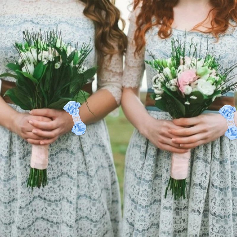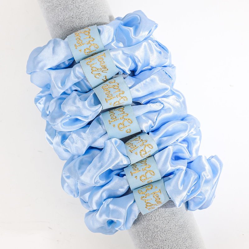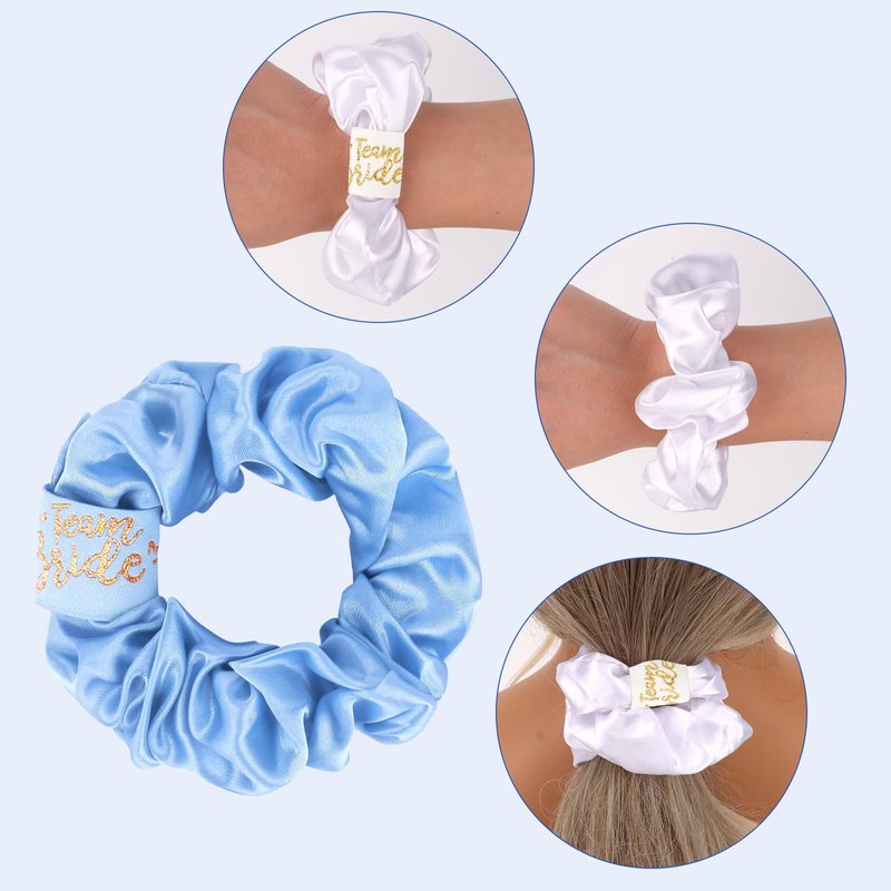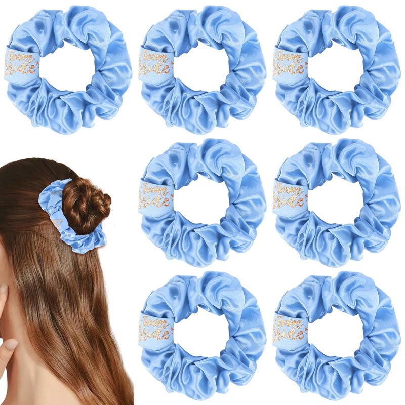 - Bachelorette party favors set: You will receive 8 pieces of satin scrunchies ,including 7 pcs blue embroidered with "team bride" for bridesmaid