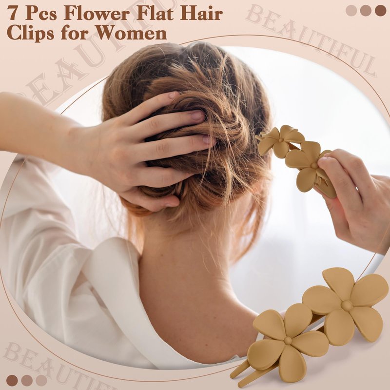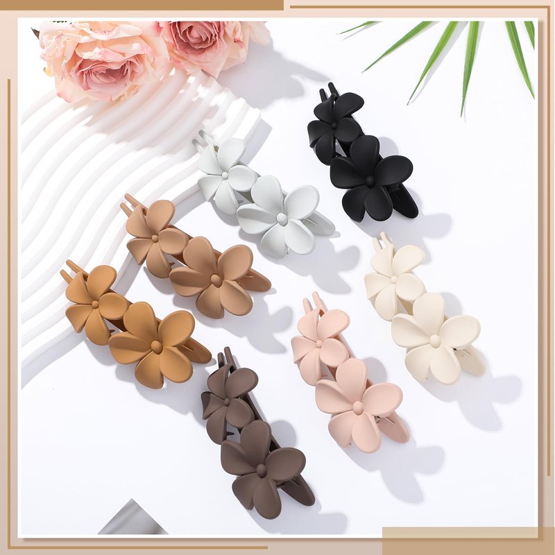 - 【7 Color Flower Hair Clips】These non-slip matte hair clips are 4.33*1.97 inches in size and are available in black, coffee, brown, cream, gray, light pink and milk tea colors to meet your different matching needs and easily create various styles.