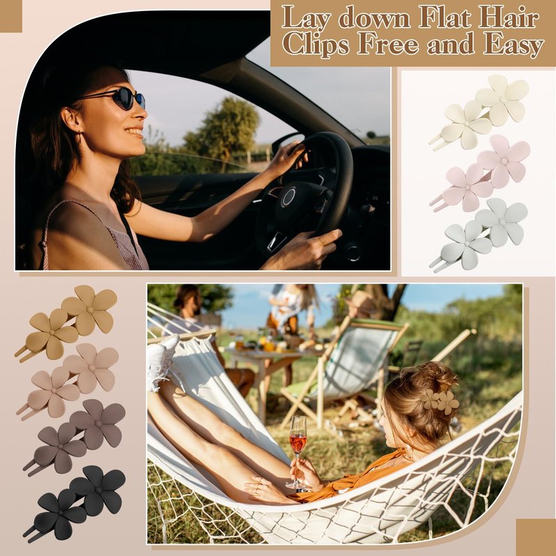 - 【Flat Claw Clips】These lay flat claw clips are easy to use and can fix your hair in seconds. You can wear them while driving or lying down! The exquisite and beautiful double flower pattern design is great with any outfit, making you dazzling in the crowd.