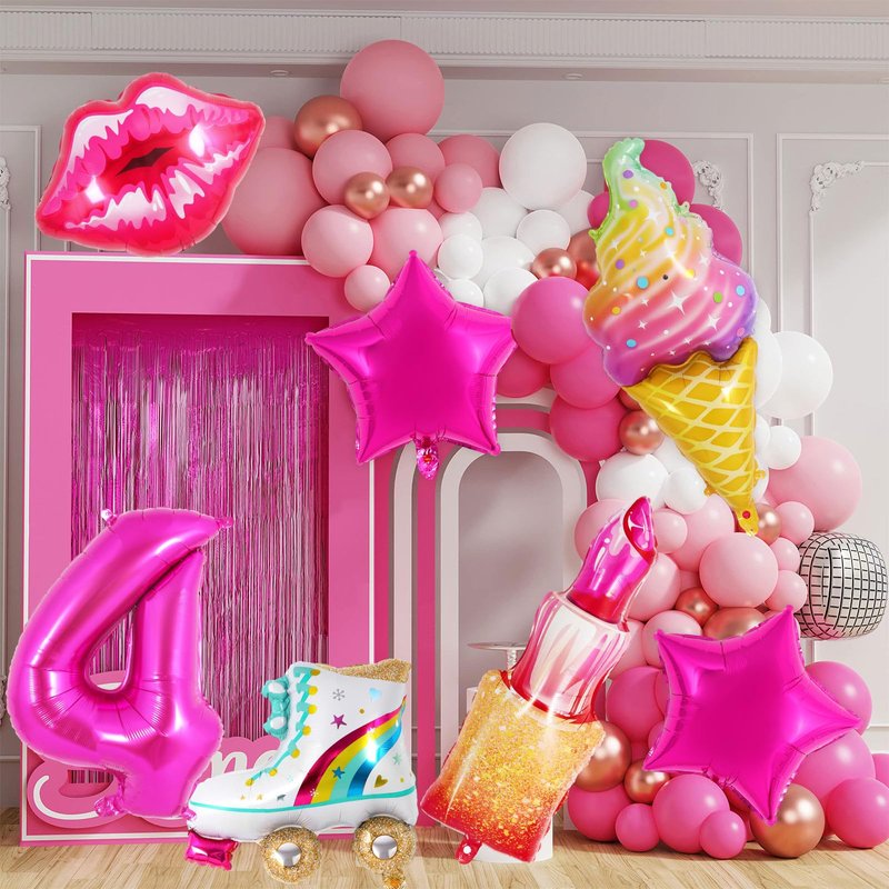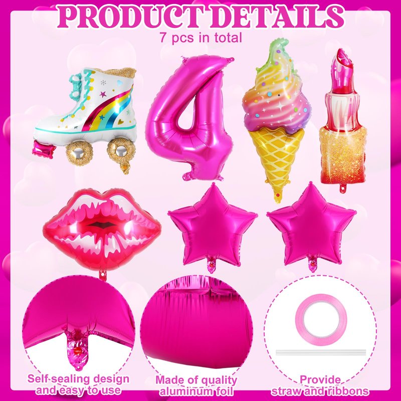 - Package includes: You will receive a pink girl balloon set, which includes 1 pc ice cream shape balloon, 1 pc lipstick shape balloon, 1 pc roller skate shape balloon, 1 pc sexy lip shape balloon, 1 pc digital number balloon, 2 pc star balloons, a roll of 5m/16.4ft rose red ribbon and straw. The quantity is sufficient and the styles are diverse to meet your party decoration needs, leaving an unforgettable impression