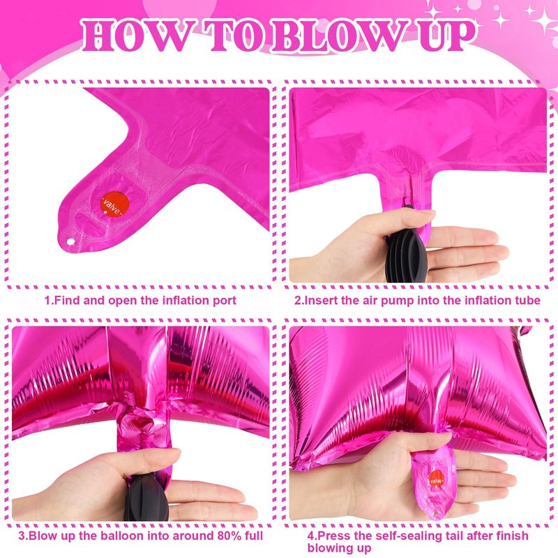 - High quality material: The pink girl theme party balloons are made of aluminum foil material, which is safe and environmentally friendly, non-toxic and harmless, not easy to break or fade, lightweight, easy to hang and carry. The pink balloon adopts a self sealing design, which will not leak and can be reused for long-term storage
