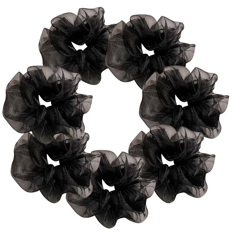 7 Pcs Shiny Dance Cheer Fluffy Mesh Silky Hair Scrunchies For Thick Hair Performance/Sports/Party/Gymnastics Scrunchie Ponytail Holder Wrist for Girls Show (Black)
