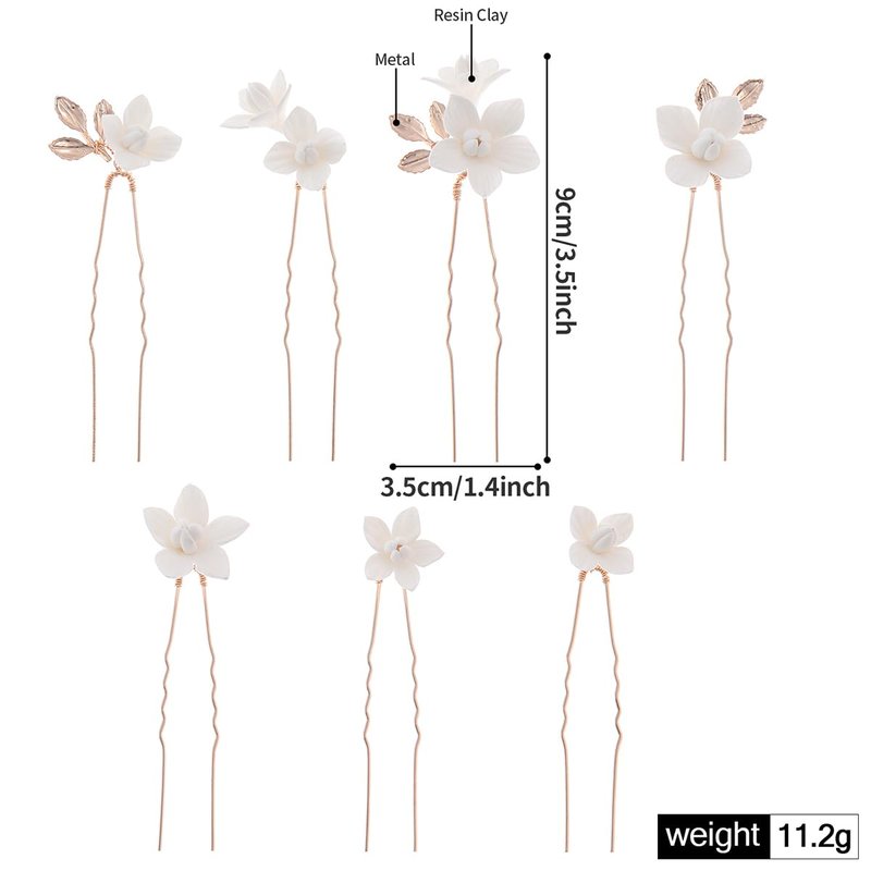 7 Pieces U shaped Vintage Gold Leaf Hair Pins for Women Handmade New Material Polymer Clay Flower Wedding Hair Pins Bridal Accessories Jewelry