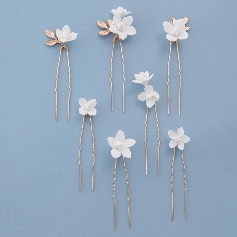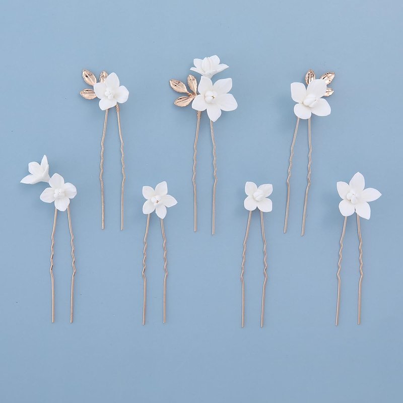 - ❀New polymer clay material is particularly excellent in terms of ductility, plasticity and functional shaping. It can not only be used to shape, but also after oven or low temperature oven firing can be formed, so that the flowers on our wedding hair pins have no deformation, waterproof, sun protection, elastic, bright color, not broken and other characteristics.