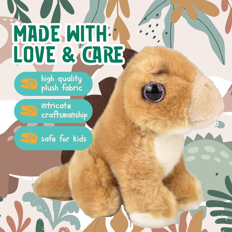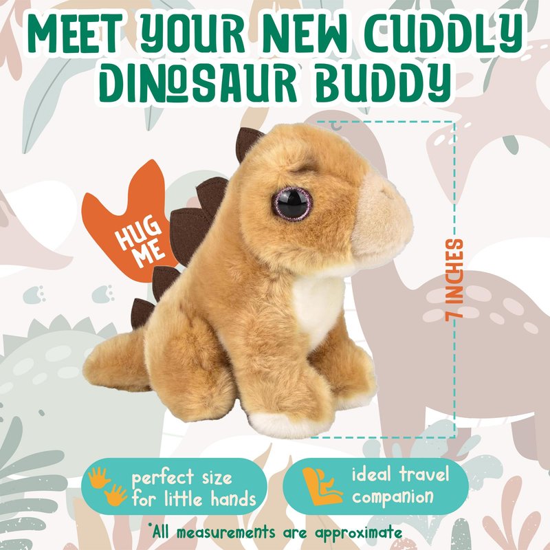 - 🦖 CAREFULLY CRAFTED, WITH PREMIUM PLUSH FABRICS - Every detail has been intricately considered in order to achieve a quality soft dino stuffed animal. It is super cute and ultra-cuddly. Measuring about 7”, this plush stegosaurus is perfect to share lots of adventures with your kids. Take it with you on a family vacation, weekend trip, night stands at grandma’s house and more!
